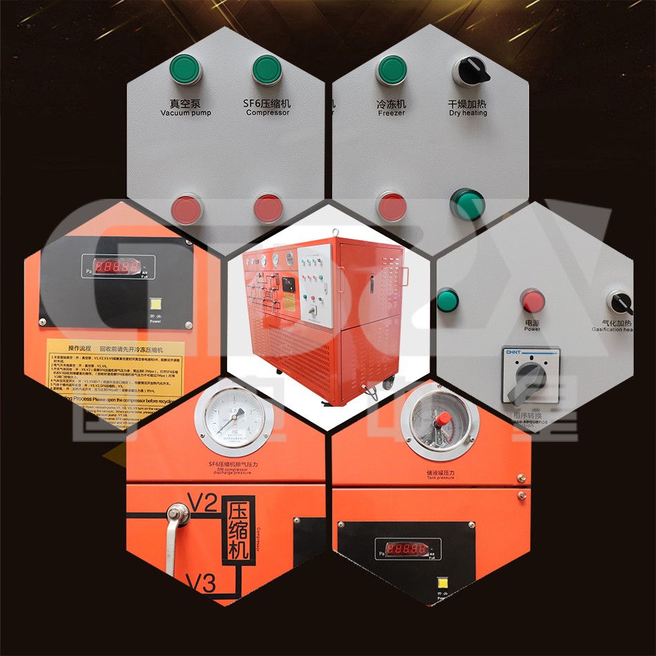 SF6氣體作為一種絕緣氣體,具有無(wú)毒、不可燃,以及良好的絕緣特性,其絕緣強(qiáng)度大大高于傳統(tǒng)的絕緣氣體,并具有良好的滅弧性,因此廣泛應(yīng)用于SF6電器。由于SF6氣體價(jià)格昂貴,且在電弧、電火花和電暈放電的作用下,會(huì)分解產(chǎn)生有毒成份。因此SF6電器設(shè)備應(yīng)用時(shí)需要將SF6氣體回收。ZX7Y-15-50 SF6氣體回收裝置就是為了制造和維修SF6電器設(shè)備時(shí),回收和充加SF6氣體的一種專(zhuān)用設(shè)備。本裝置適用于SF6電氣設(shè)備中六氟化硫氣體進(jìn)行抽真空、充氣、回充、凈化及回收。